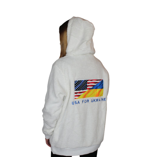 Unisex Sherpa Hoodie with Embroidered Ukrainian and US Flags